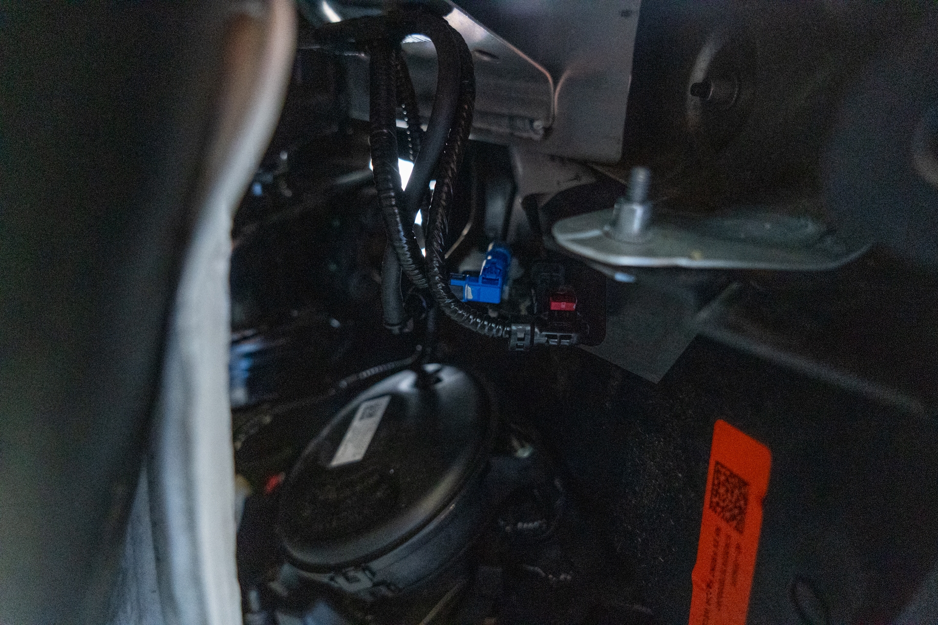 Next, plug the front speaker into the factory wiring harnesses near the passenger side fender liner.