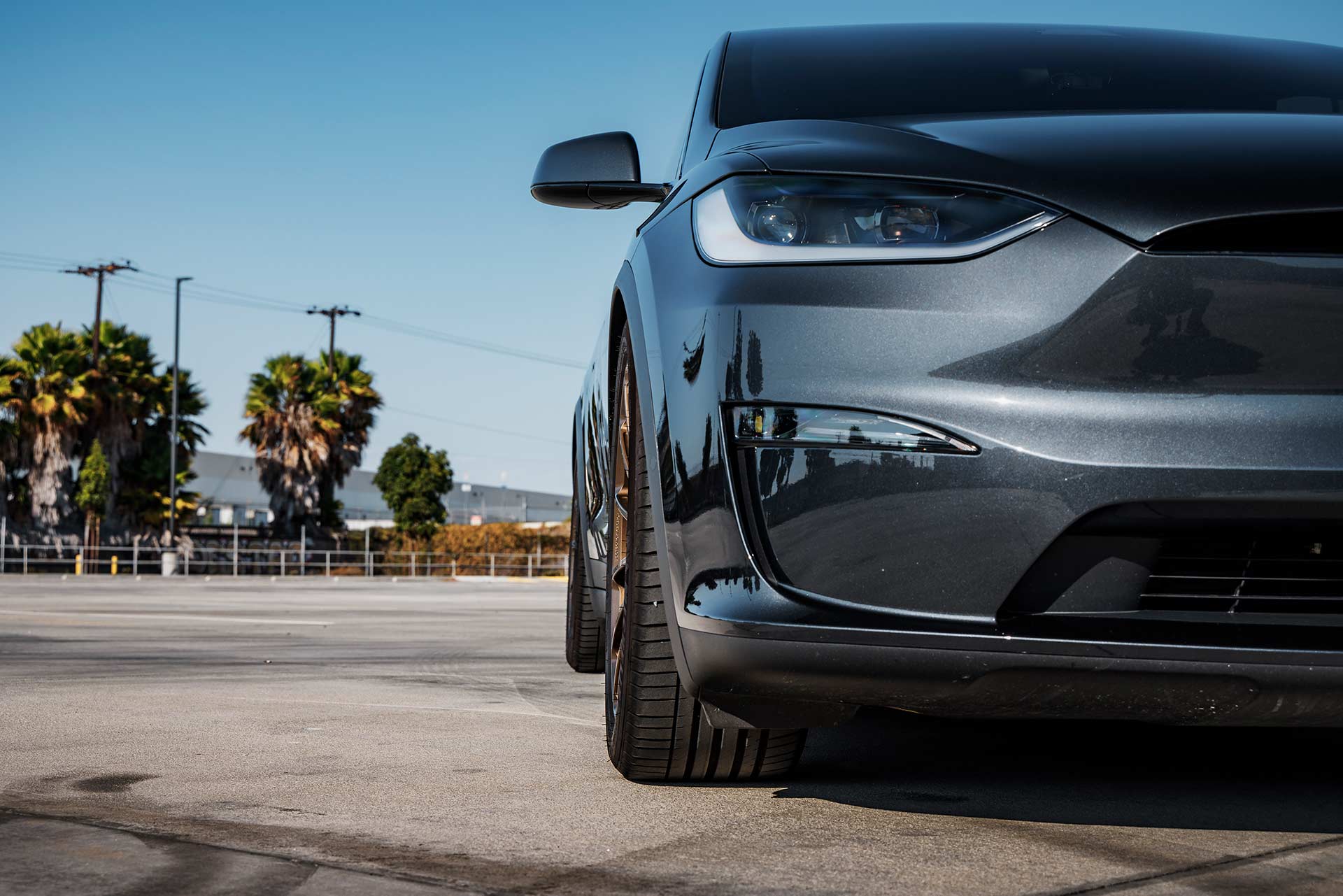 Our customer brought in a Stealth Gray Tesla Model X Long Range for subtle changes that would make a big difference in daily driving. Think school drop off, mall parking, weekend coffee runs, and long family road trips. The Tesla Model X Long Range is a serious machine with a curb weight of approximately 5,148 pounds, so smart upgrades that improve stance, response, and braking confidence pay off every time you drive.