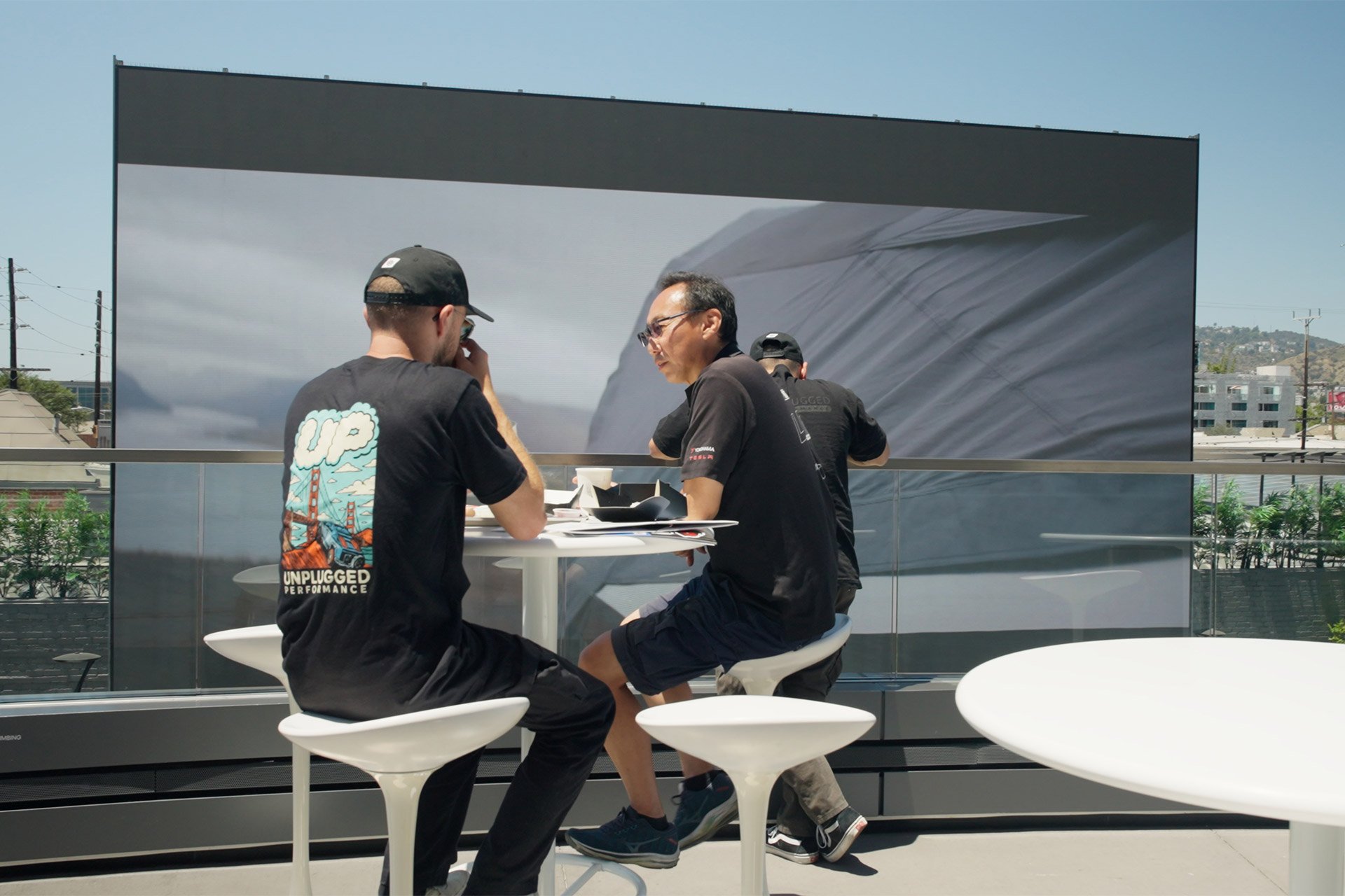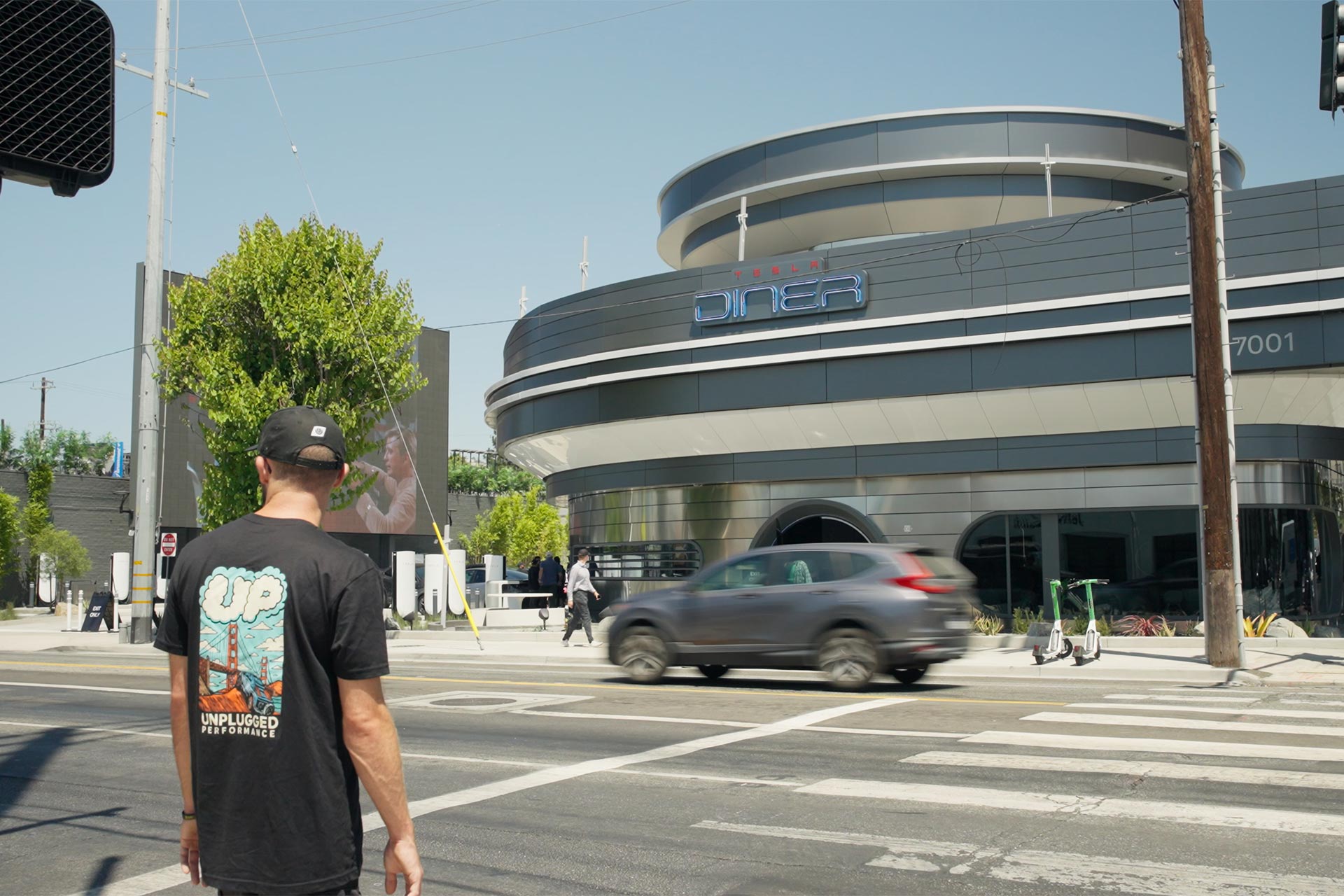One sunny afternoon, our team—Luke, Moto, Skyler, and Bryan—rolled out from our HQ in Hawthorne, California, en route to Hollywood. Cruising into the Tesla Diner’s lot, we were greeted by welcoming staff who told us to park at any open charging spot. Lucky for us, two prime spots right in front of the diner were open. Talk about perfect timing!