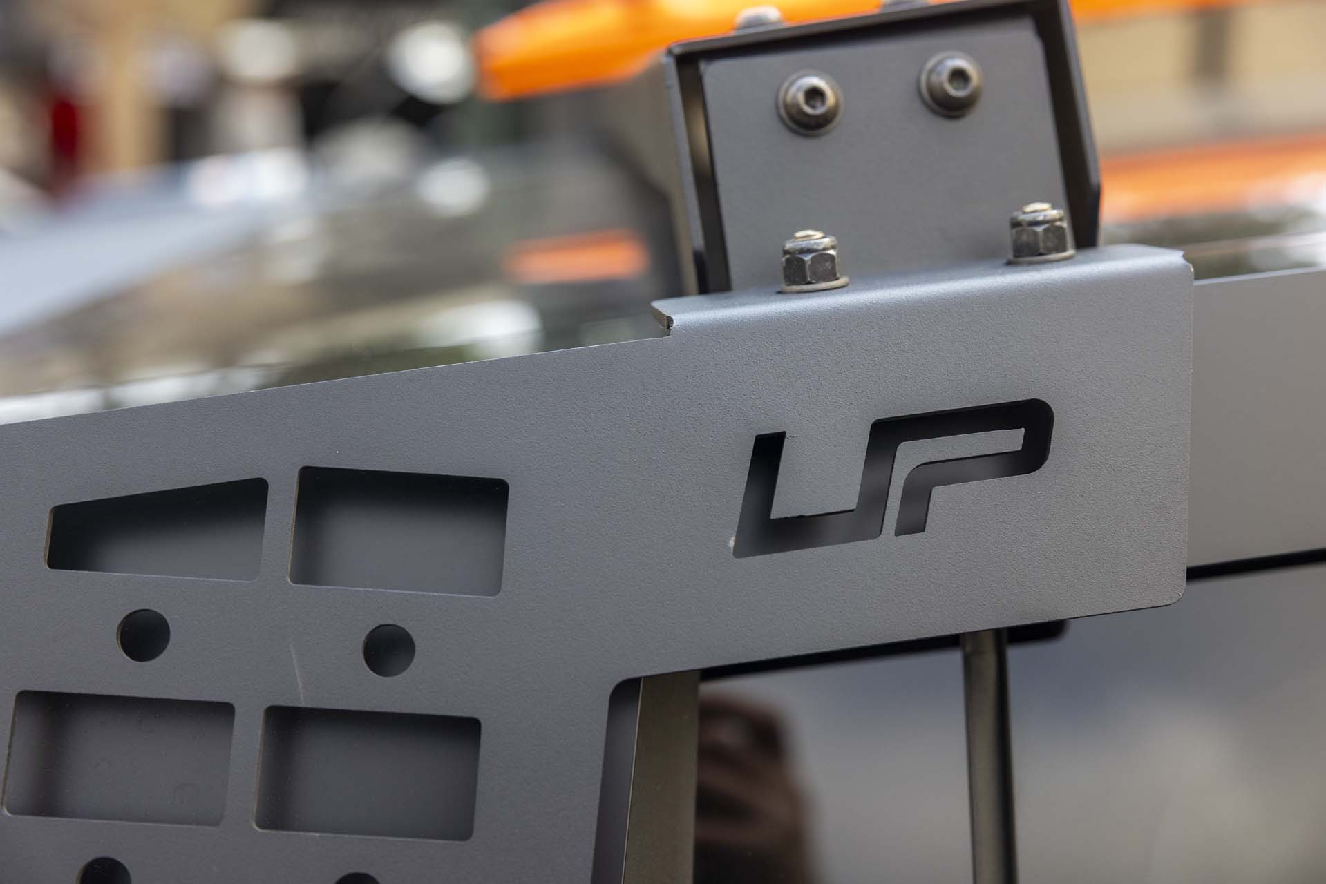 This Cyberbeast turned heads with its stealth Bruce Wayne-like aesthetic, hardcore steel bumpers, modular roof rails, side sail molle rack and an integrated lighting setup that could light up a dark valley. On the feet, we had our newest member to the UP Forged wheel family, CYBRSPOKE. A 24-inch Forged Wheel with a Satin Black finish wrapped in 295/45R24 Nitto Recon Grapplers for range optimization.