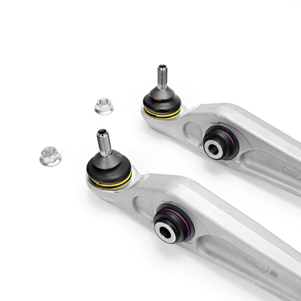 (2) Front lower aft suspension arms with 1 spherical bushing and 1 spherical ball joint pressed in