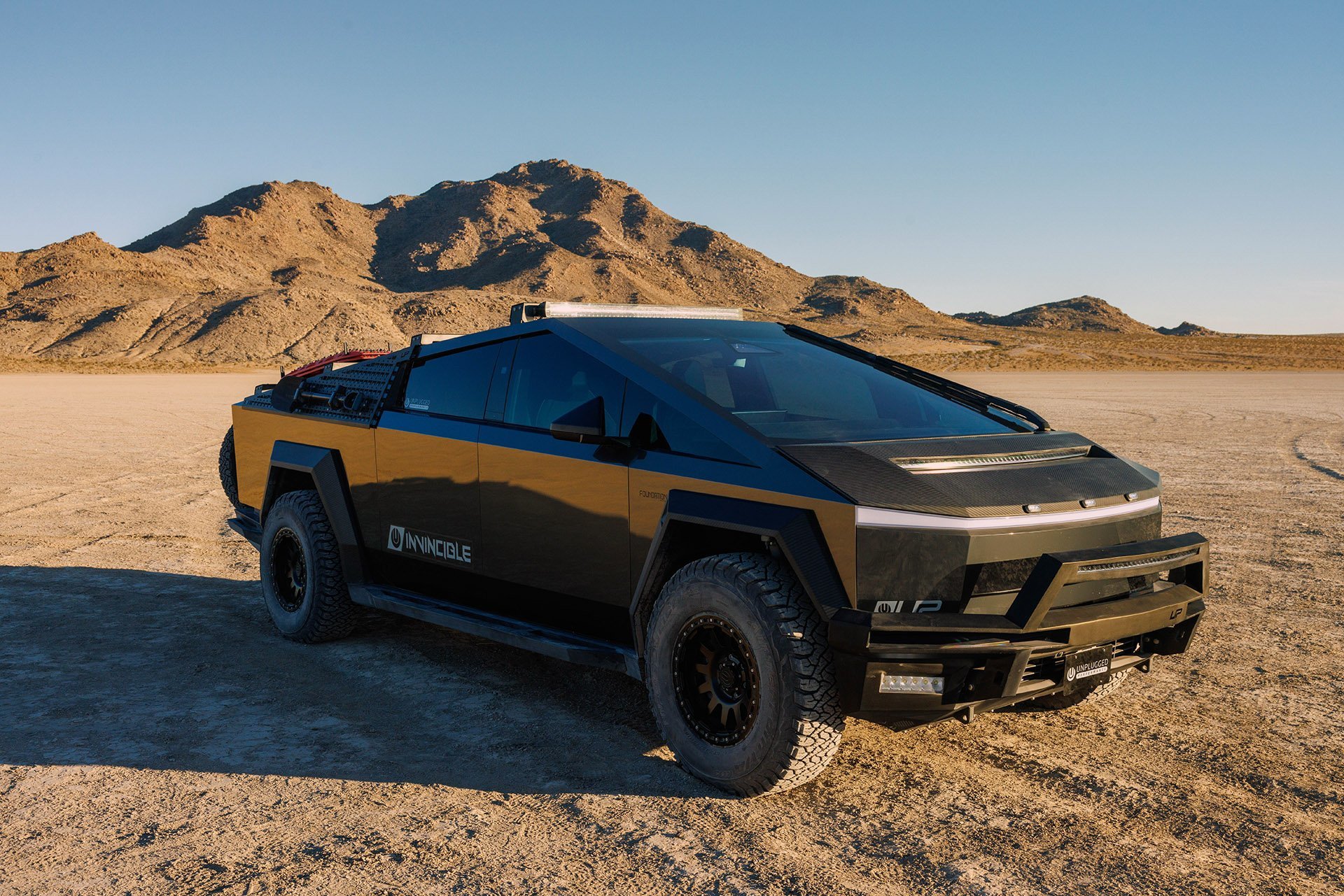The Unplugged Performance UP INVINCIBLE® HD Front Bumper system is a robust, modular front system that provides unprecedented strength and utility by replacing the factory plastic front bumper with upgraded steel components + optional high-output 11-inch LED lights. The bumper is designed for compatibility with Tesla’s front camera systems and is optimized for a much-improved approach angle.