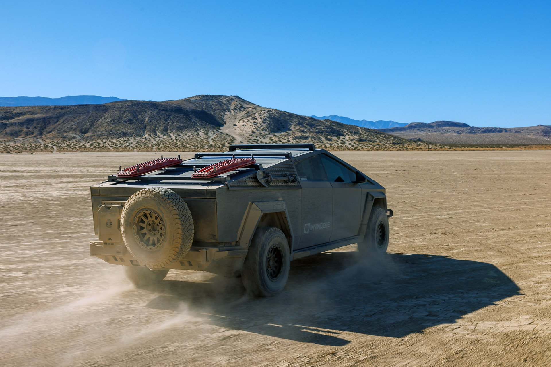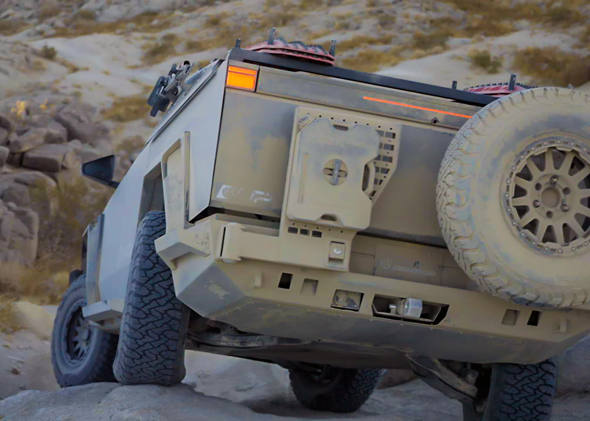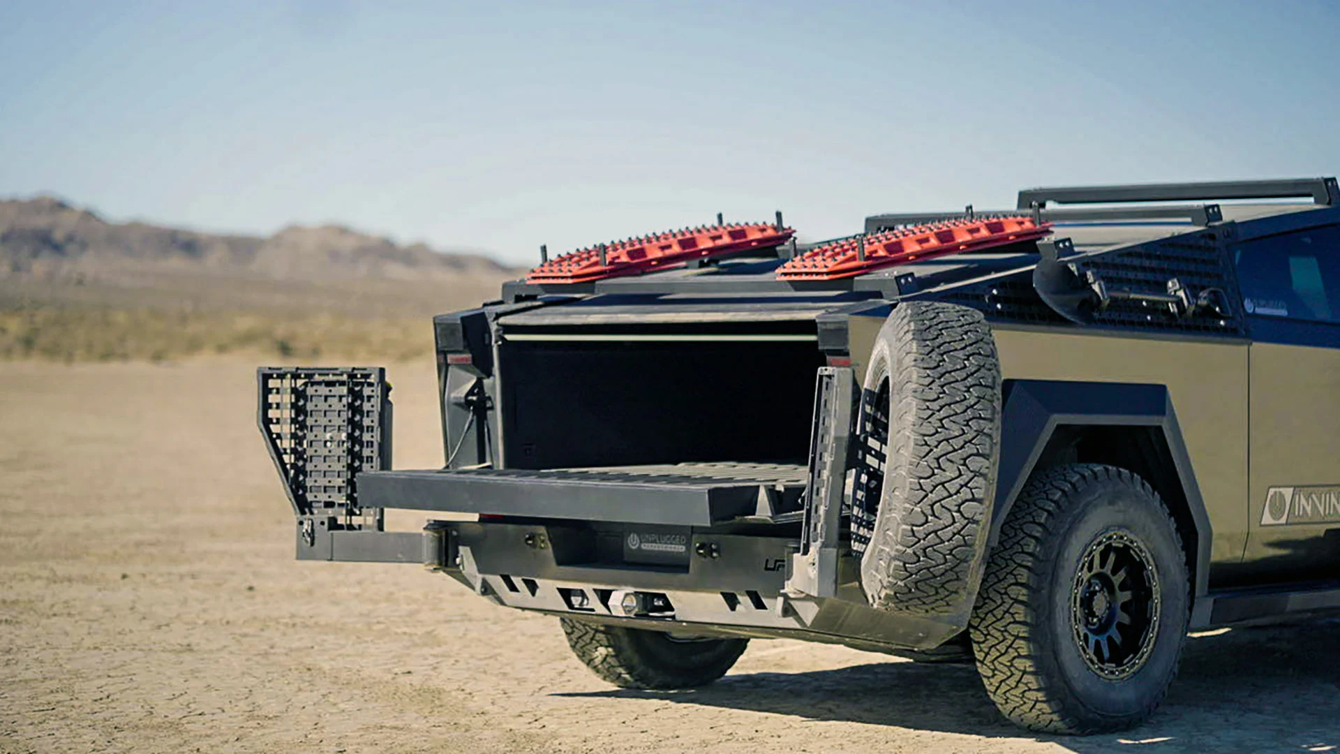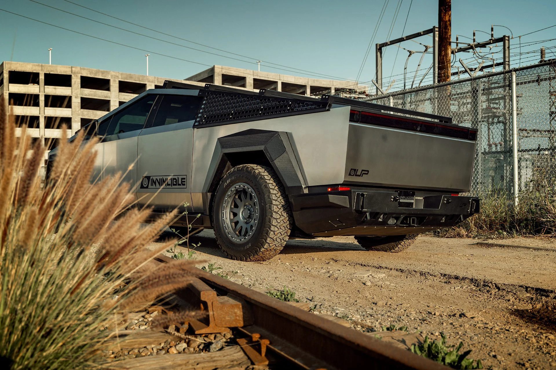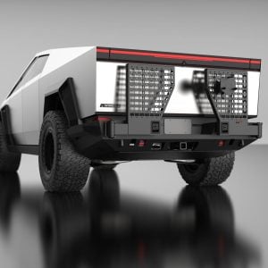 The INVINCIBLE® HD Rear Bumper is made from high-strength steel for extreme durability, includes integrated Hi-Lift jack points, two recovery points, and improves departure angle. It’s designed from the ground up to make your Cybertruck bumper as tough and multi-functional as the rest of the truck. Every Base bumper has provisions to accept the factory bluetooth module and to accept towing electronics hookups, as well as supporting a huge amount of weight for any purpose. The UP INVINCIBLE® HD Rear Bumper is designed with additional features in mind, such as the included Rear-Mounted LED Flood Lights and Hardcore Trailer Hitch Receiver, as well as optional swing arms with MOLLE panels, rear rock sliders, and Spare Tire Carrier. Accessory options can be included in the initial purchase or added at a later date.