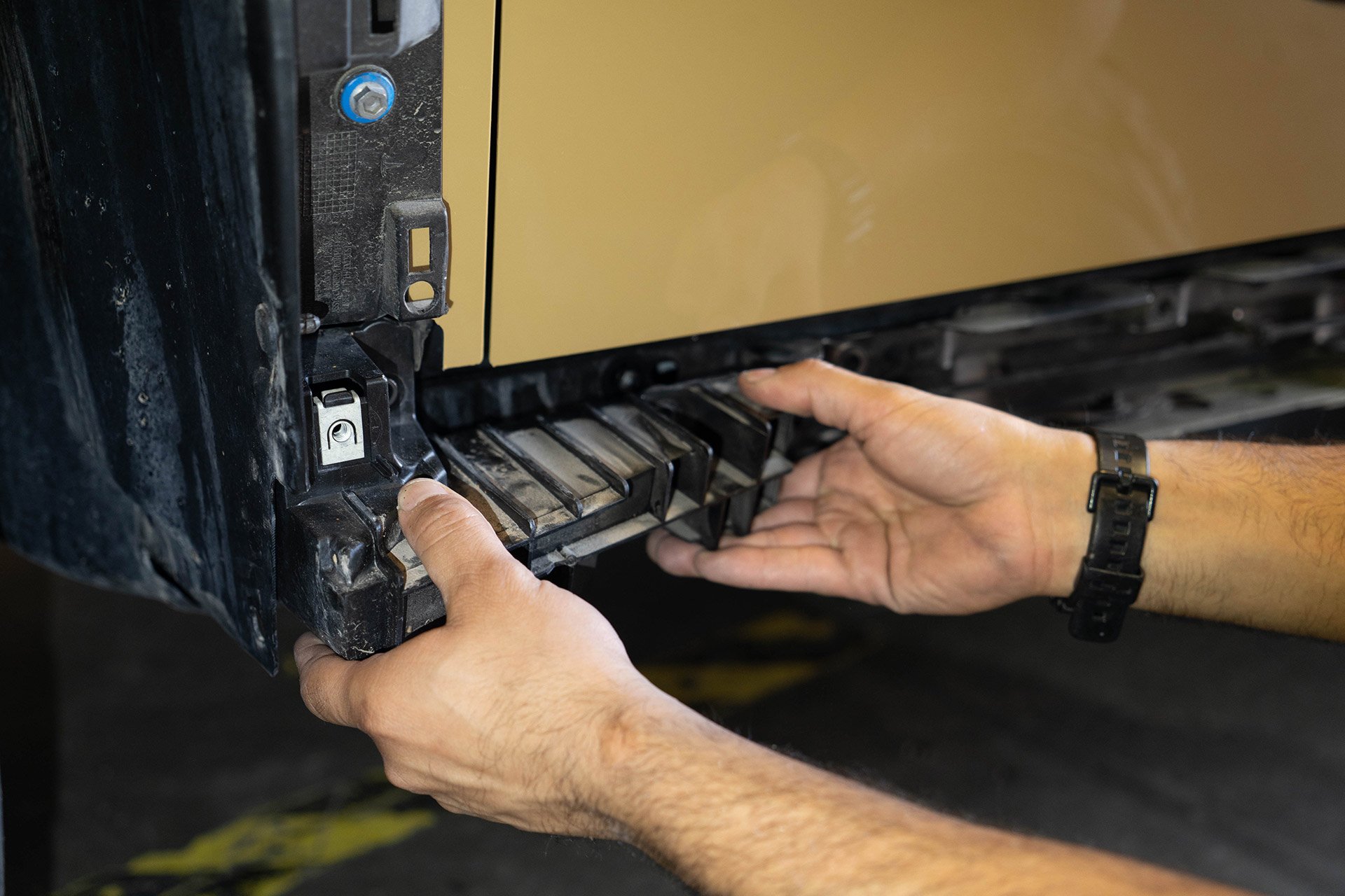Next, disconnect all 12 push clips by swiftly pulling the factory rocker panel away from the vehicle.