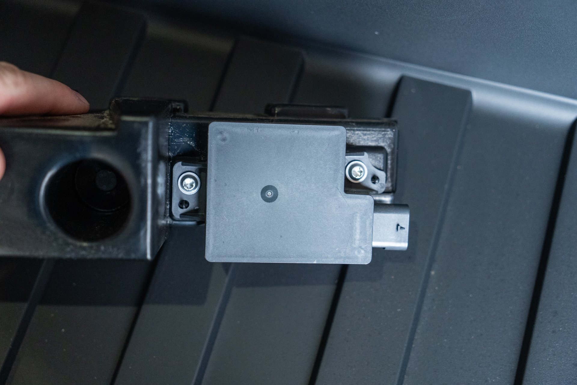 Using a pry tool, disengage all 6 clips securing the cover behind the front license plate mount and remove it from the front bumper cover in order to access the front camera.